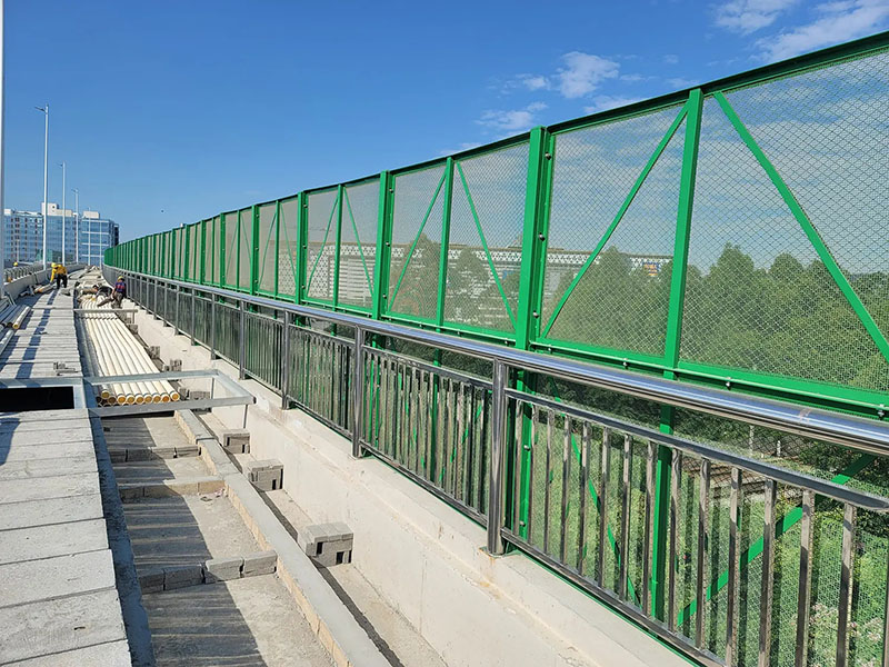 橋梁防拋網(又名橋梁防護網、橋梁護欄網)是由優質低碳鋼絲經過拉拔、編織、焊接、浸塑等一系列工藝加工而成,它廣泛用于市政高架橋,高速公路立交橋,鐵路立交橋,過街天橋,港口碼頭,畜牧,養植等的護欄防護。